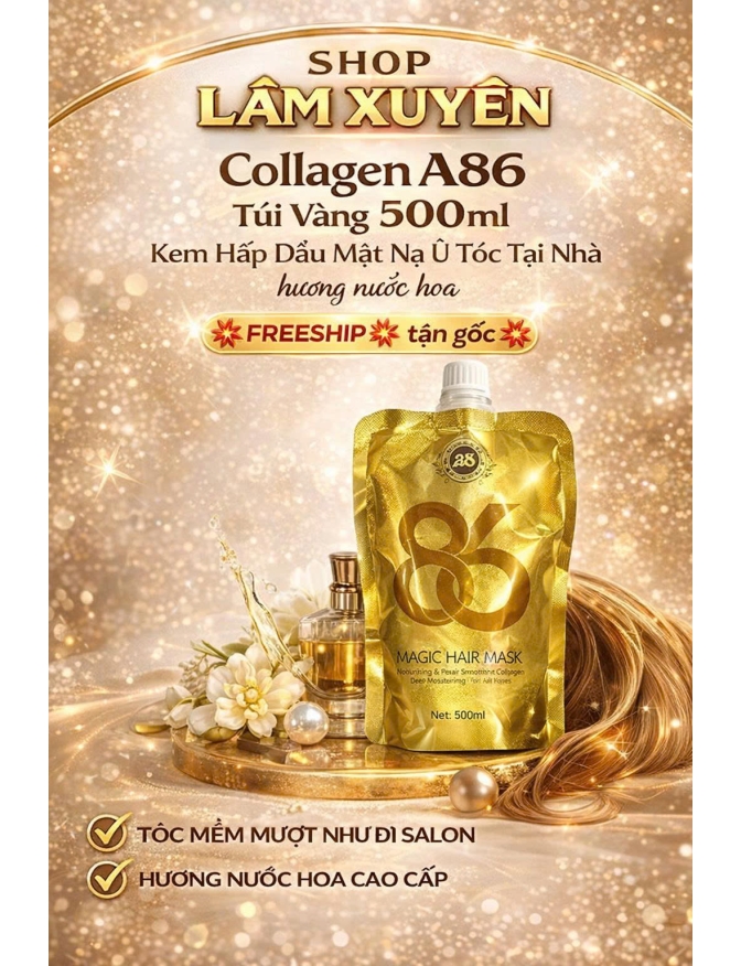 KEM HẤP DẦU QL8X COLLAGEN CON CÒ 500ML dạng túi CHÍNH HÃNG siêu bóng mềm mượt cải thiện tóc hư tổn.