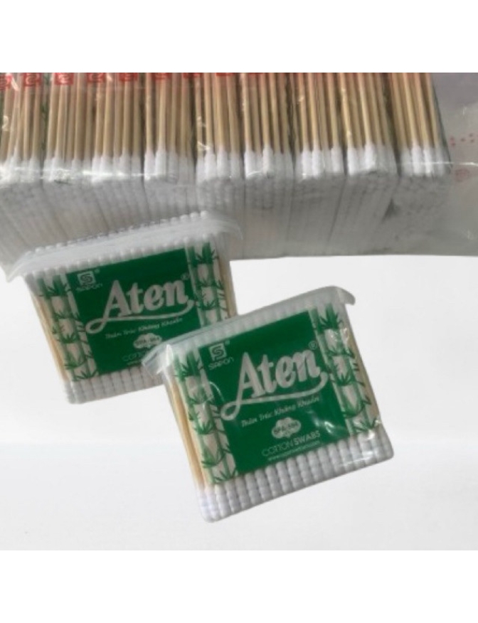 Hộp 500 Tăm bông thân gỗ tre ngoáy tai người lớn 2 đầu vệ sinh tai đa năng an toàn và tiện lợi