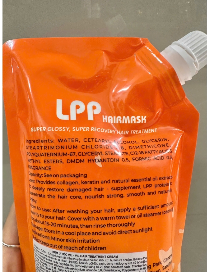 Hấp dầu kem ủ tóc VIL LPP TÚI CAM 500ml phục hồi khô xơ hư tổn giúp mái tóc bóng mượt.