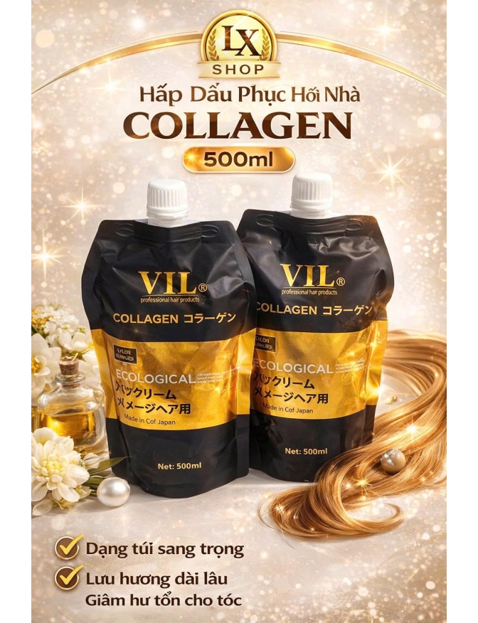 Cặp thuốc duỗi thông minh COLLAGEN VIL 1000*2 giúp tóc thẳng bóng và siêu mượt giá rẻ