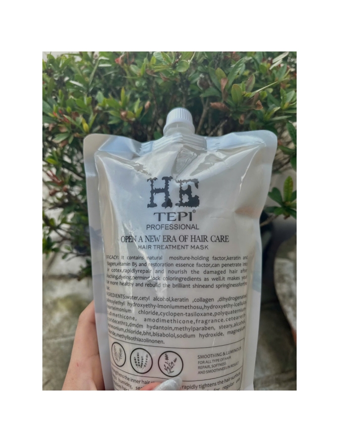 Hấp dầu ủ tóc HE Tepi collagen Keratin 3in1 1000ml 1 túi phục hồi hư tổn mềm mượt tóc hương nước hoa