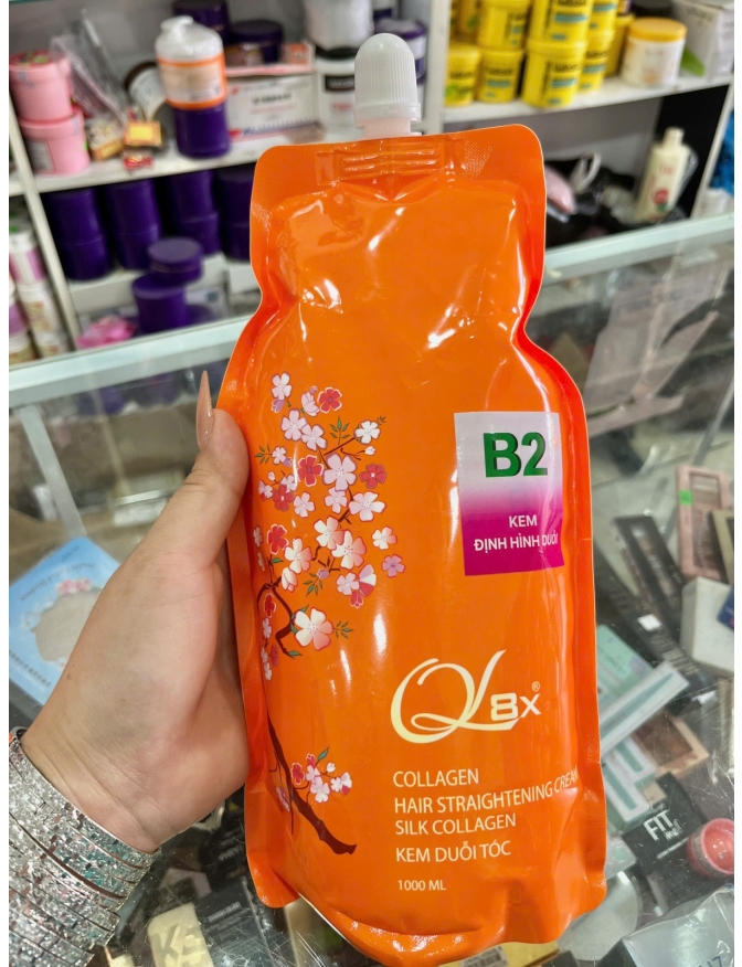 Kem duỗi siêu mạnh collagen Ql8x 1000ml túi cam dành cho tóc khỏe thấm nhanh thẳng nhanh chuẩn salon