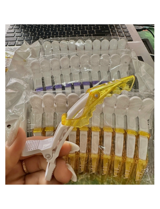 Chất liệu nhựa ABS hoặc nhựa cao cấp giúp kẹp nhẹ, bền, chịu nhiệt và hóa chất, rất lý tưởng khi dùng với công cụ nóng hoặc sản phẩm tạo kiểu tóc