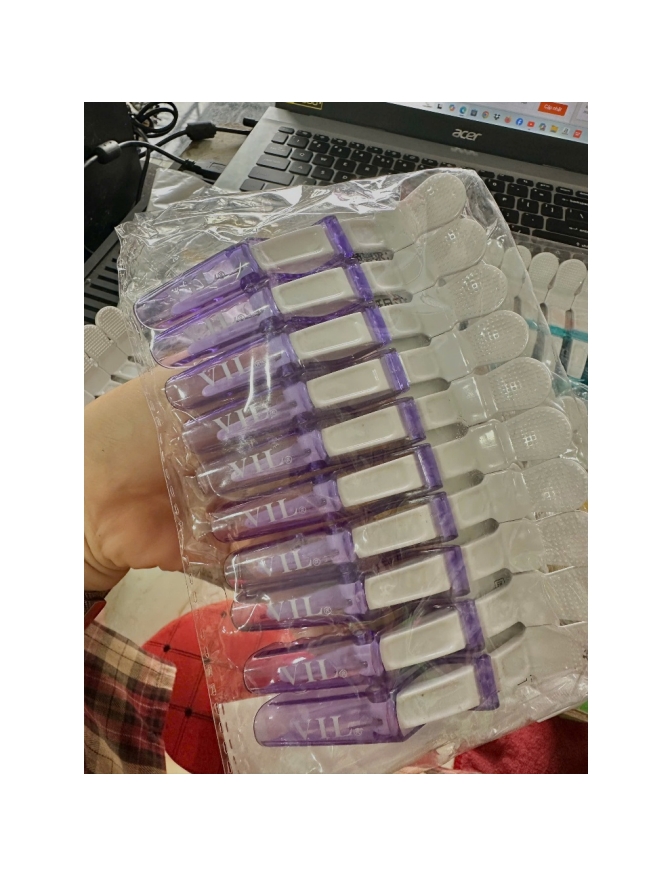 Kẹp Cá Sấu Giữ Nếp Tóc Vil (10 cái) Ưu điểm: Set gồm 10 chiếc, chất liệu nhựa ABS bền, thiết kế giống hàm răng cá sấu với lò xo chắc chắn, giữ tóc tốt mà không gây hư hại. Kẹp cá sấu là dụng cụ không thể thiếu trong salon, dùng để chia tóc thành các phần nhỏ giúp quá trình uốn, sấy, nhuộm diễn ra chính xác và hiệu quả hơn