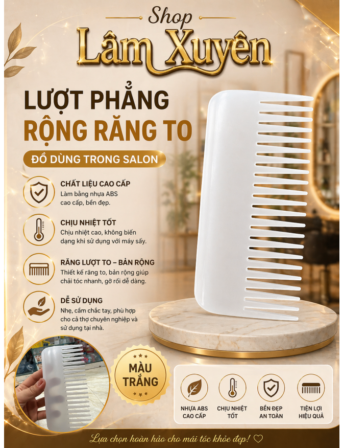 Lược cắt tóc CHÍNH HÃNG nhựa dẻo ABS màu trắng bền bắt tóc nhỏ gọn dễ cầm chịu nhiệt tốt cao cấp