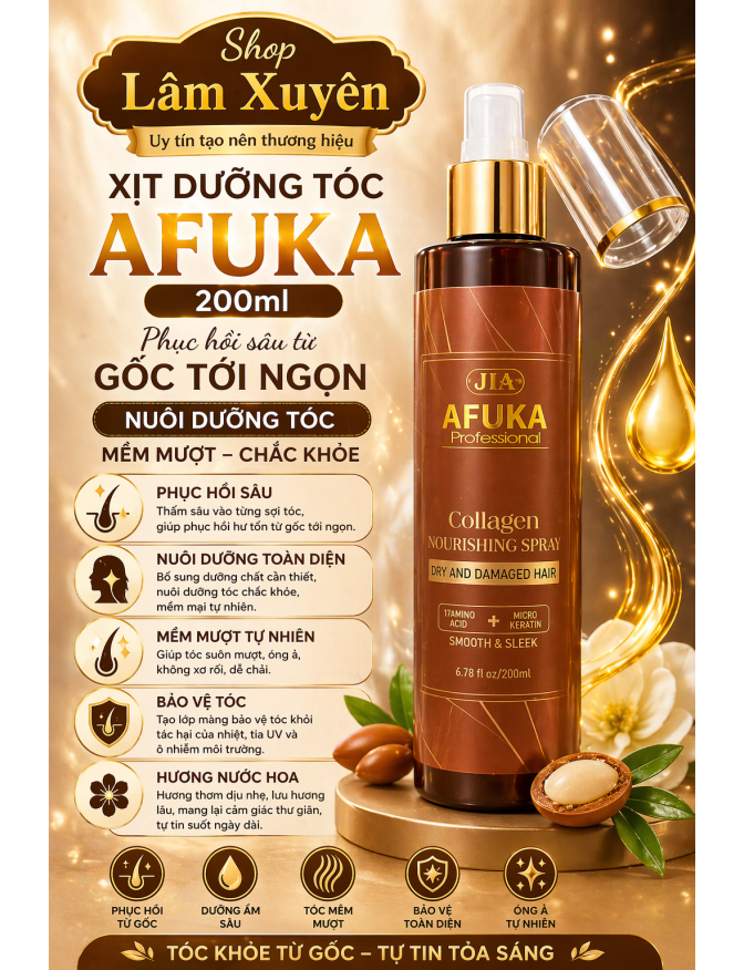 Tinh dầu dưỡng tóc Afuka MAROCCO ARGAN OIL 65ML hộp xám dưỡng bóng mềm mượt hương nước hoa siêu thơm