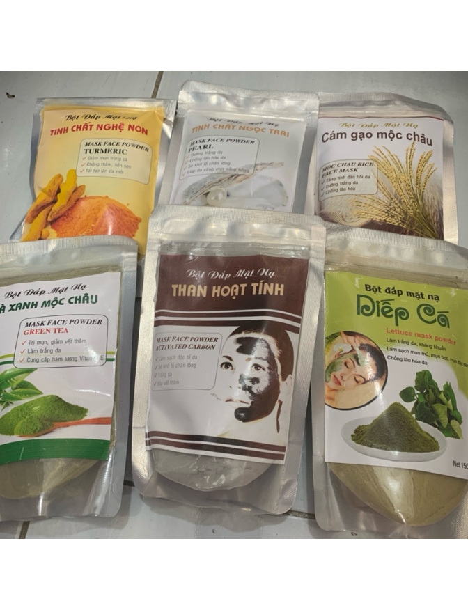 Bột đắp mặt thảo dược ngừa nám da, làm sáng da, sạch mụn, mịn da, se khít lỗ chân lông . - Làm lưu thông khí huyết trên vùng cơ, da mặt, tác dụng sâu vào các điểm đồng ứng và khu phản xạ trên khuôn mặt theo y học cổ truyền. Công Dụng : – khi sử dụng chung với thuốc giúp quá trình tái tạo nhanh đồng thời – Đẩy sạch bụi bẩn dưới da giúp ngăn ngừa mụn . – Giúp thúc đẩy quá trình hấp thụ Thuốc trong khi đang tái tạo vượt trội nhanh chóng . – Loại bỏ tế bào chết , tẩy trang . – Se khít lỗ chân lông , giảm nhờn . – Dùng thay thế cho sửa rữa mặt hằng ngày