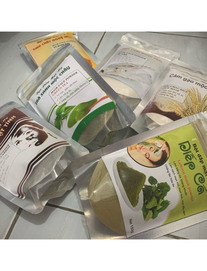 Bột đắp mặt thảo dược ngừa nám da, làm sáng da, sạch mụn, mịn da, se khít lỗ chân lông . - Làm lưu thông khí huyết trên vùng cơ, da mặt, tác dụng sâu vào các điểm đồng ứng và khu phản xạ trên khuôn mặt theo y học cổ truyền. Công Dụng : – khi sử dụng chung với thuốc giúp quá trình tái tạo nhanh đồng thời – Đẩy sạch bụi bẩn dưới da giúp ngăn ngừa mụn . – Giúp thúc đẩy quá trình hấp thụ Thuốc trong khi đang tái tạo vượt trội nhanh chóng . – Loại bỏ tế bào chết , tẩy trang . – Se khít lỗ chân lông , giảm nhờn . – Dùng thay thế cho sửa rữa mặt hằng ngày