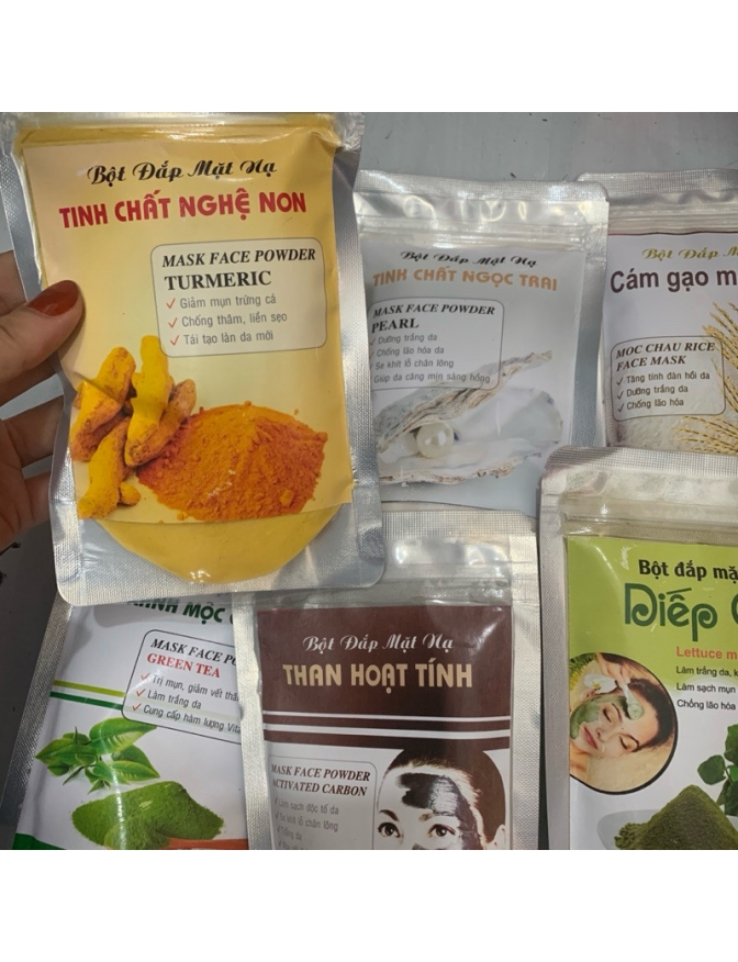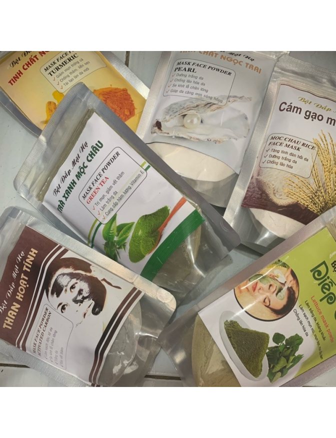 Bột đắp mặt thảo dược ngừa nám da, làm sáng da, sạch mụn, mịn da, se khít lỗ chân lông . - Làm lưu thông khí huyết trên vùng cơ, da mặt, tác dụng sâu vào các điểm đồng ứng và khu phản xạ trên khuôn mặt theo y học cổ truyền. Công Dụng : – khi sử dụng chung với thuốc giúp quá trình tái tạo nhanh đồng thời – Đẩy sạch bụi bẩn dưới da giúp ngăn ngừa mụn . – Giúp thúc đẩy quá trình hấp thụ Thuốc trong khi đang tái tạo vượt trội nhanh chóng . – Loại bỏ tế bào chết , tẩy trang . – Se khít lỗ chân lông , giảm nhờn . – Dùng thay thế cho sửa rữa mặt hằng ngày