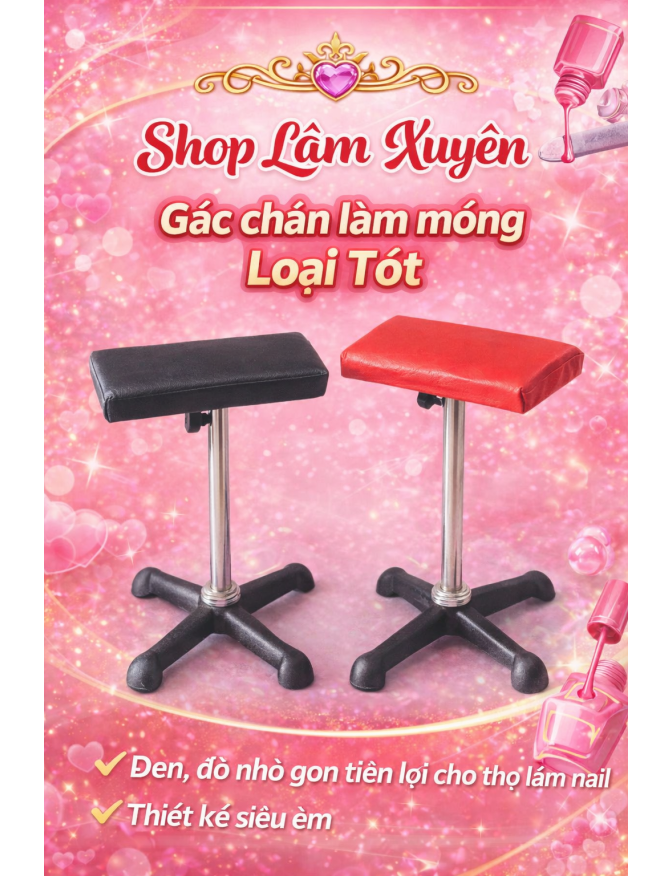Ghế ngồi làm nail đen, đỏ nhỏ gọn tiện lợi cho thợ làm nail thiết kế siêu êm