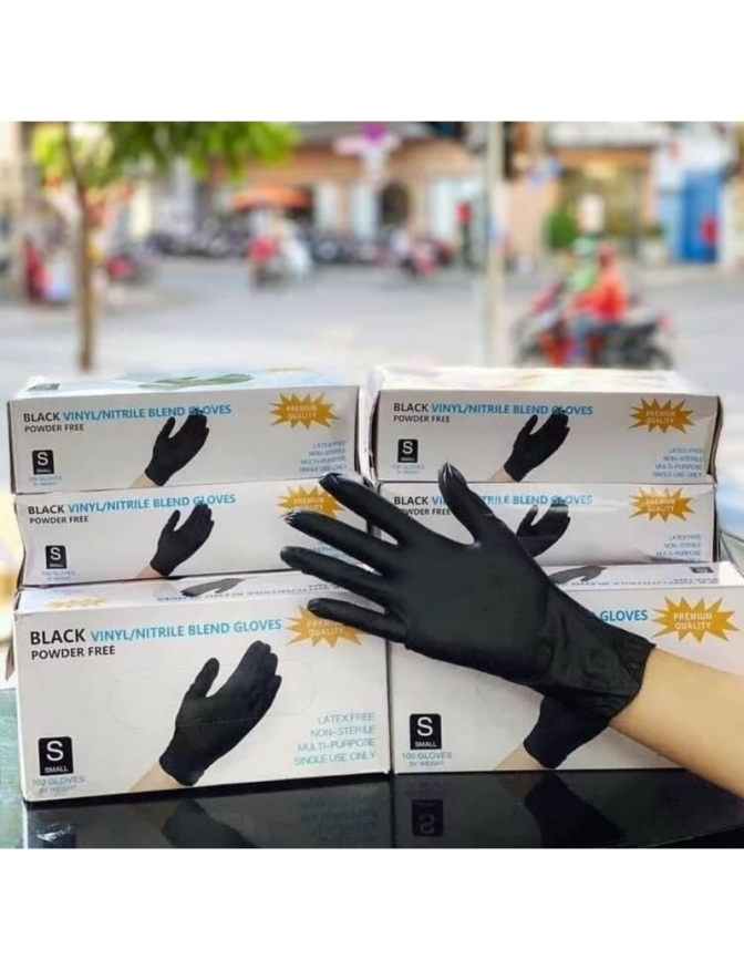 Găng Tay Đen Y Tế Không Bột Hộp 100 Chiếc Bao Tay Cao Su Đen Sử Dụng Trong Tóc Spa Phun Xăm Thẩm Mỹ