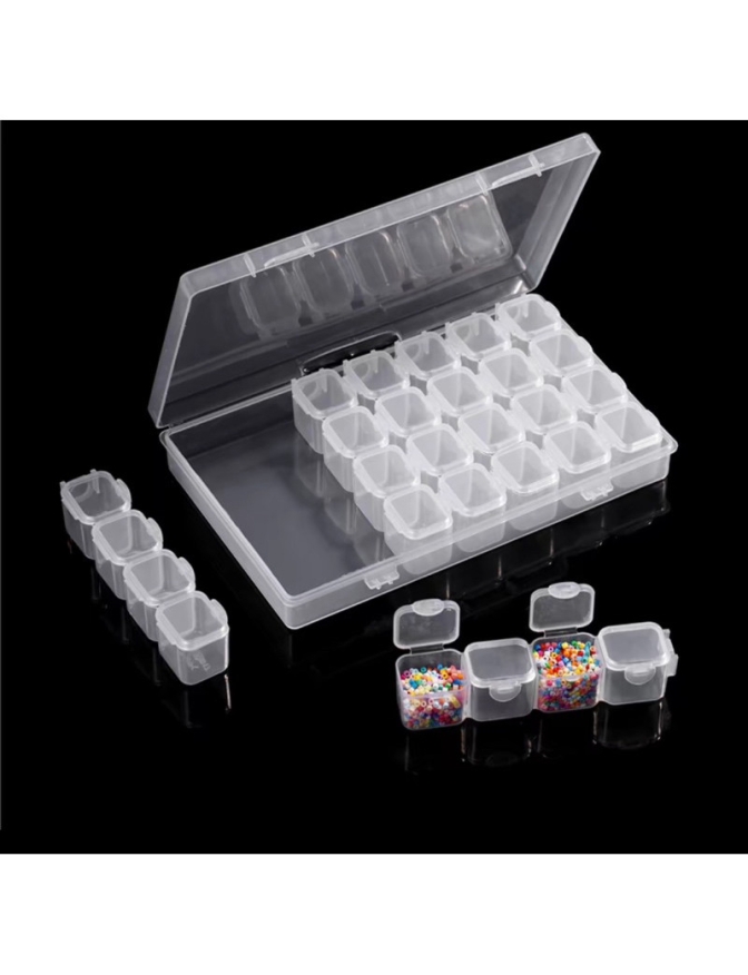 Hộp nhựa đựng đá đựng bông 28 ô có nắp gài từng ô riêng biệt nhỏ gọn dễ bảo quản màu sắc trong suốt thẩm mỹ tiện lợi