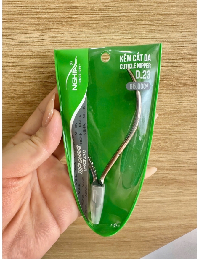Kềm cắt da NGHĨA D23 - "Đẳng cấp trong từng đường cắt" Chất liệu: Thép mạ Niken cao cấp Thiết kế: Rung bóng, bền bỉ, sắc bén Công dụng: Chuyên dụng làm nail, cắt da chính xác, không gây tổn thương Độ bền: Chống gỉ, chống mài mòn, sử dụng lâu dài