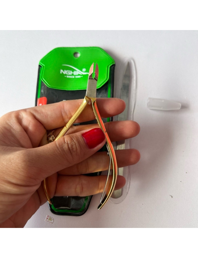 Kềm nghĩa cắt da D555 chính hãng cán vàng tặng kèm dũa sắt, mủi 16, cắt da lấy khóe siêu bén Tên sản phẩm: kềm cắt da tay Nghĩa D555 jaw 16 Thương hiệu:Kềm nghĩa Chất liệu: thép chuyên dùng không bị rỉ sét trong quá trình sử dụng