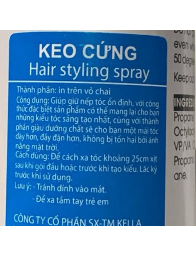 Keo xịt tóc KELLA 420ml nắp xanh CHÍNH HÃNG Gôm xịt tóc KELLA giúp giữ nếp tóc lâu, tạo kiểu nhanh gọn, không bết dính. Dạng xịt phun sương mịn giúp tóc vào nếp tự nhiên, không khô xơ.