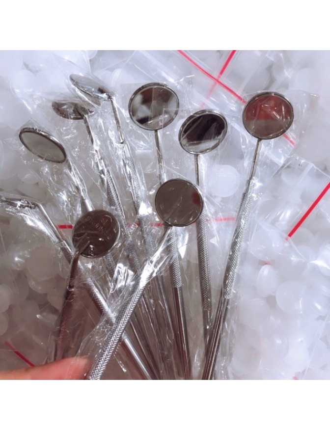 Kính soi cây nhỏ có cán cầm dùng trong soi mi khi nối mi kiếng tròn xem răng nha khoa tay cầm inox không rỉ sét