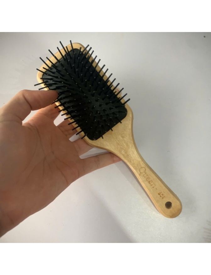 Cán cầm gỗ cứng, chắc. Răng lược làm bằng sợi nhựa to, có bọc đầu nen cực kì em ái khi sử dụng.