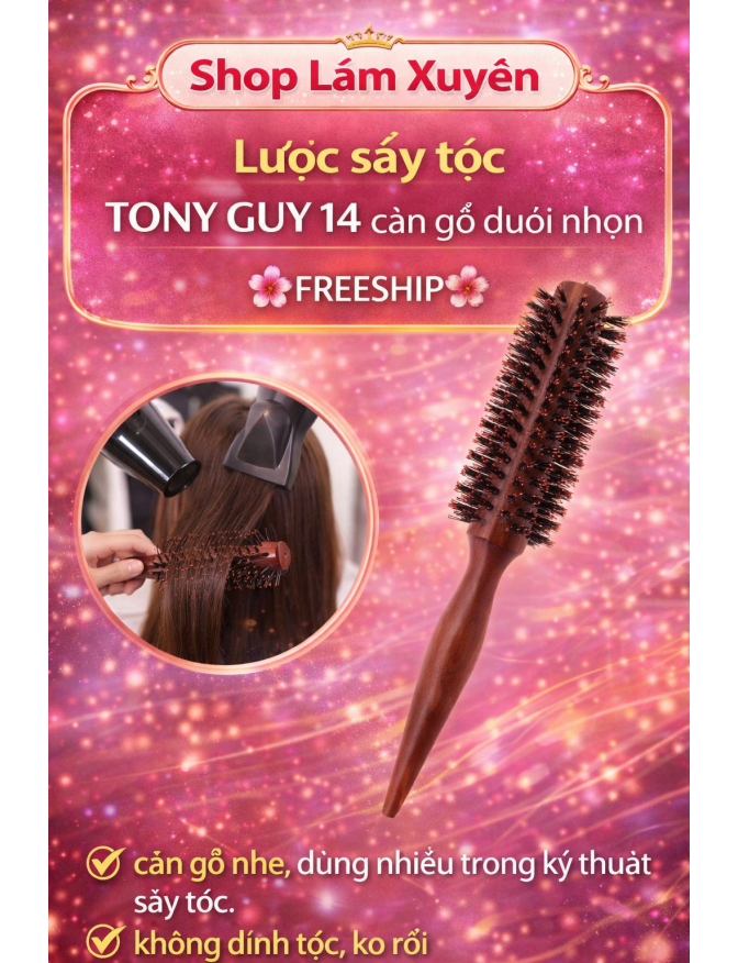 Lược sấy tóc TONY GUY 14 cán gỗ đuôi nhọn cán gỗ nhẹ, dùng nhiều trong kỹ thuật sấy tóc, không dính tóc, ko rối