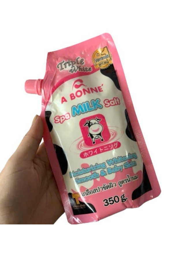 Muối tắm sữa bò tẩy tế bào chết A Bonne Spa Milk Salt được bổ sung tinh chất từ Sữa bò, dưỡng chất nên độ an toàn cao, không lo da bị dị ứng. Muối tắm sữa bò sẽ loại bỏ hẳn đi mối lo về mụn trứng cá ở lưng và bệnh viêm nang lông. Điều đặc biệt của muối tắm Spa Milk Salt là tắm xong với muối chỉ cần tắm lại bằng nước sạch mà không cần dùng đến sản phẩm sữa tắm nào khác. Giúp toàn thân trắng hồng, mịn màng hơn bao giờ hết.