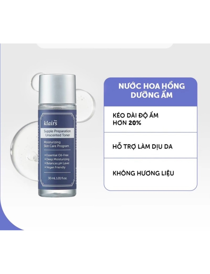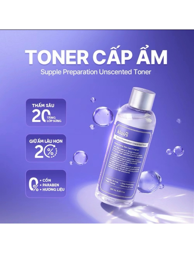 Supple Preparation Unscented Toner của Klais được thiết kế đặc biệt để hỗ trợ
