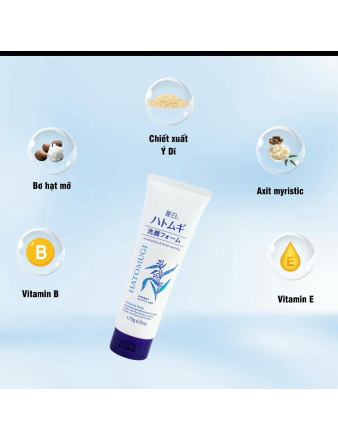 Dưỡng trắng và dưỡng ẩm: Sửa rửa mặt Hatomugi tuýp 170g giúp dưỡng trắng và dưỡng ẩm cho da. Sản phẩm giúp làm sạch nhờn, giảm thiểu mụn hiệu quả.