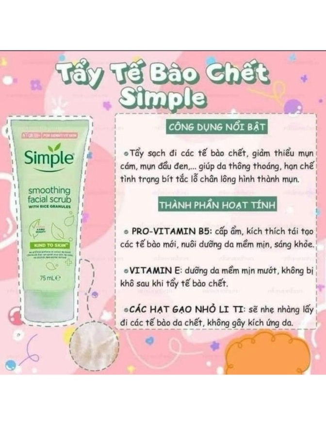 Tẩy tế bào chết Simple cho da nhạy cảm 75ml làm sạch bụi bẩn loại bỏ da chết làm sạch da siêu thích