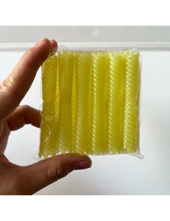 Có 5 size lớn và nhỏ , dùng để uốn tóc hoặc dập tóc. Xương thiết kế xoắn trơn, không dính tóc nhựa dày siêu bền cao cấp, giá rẻ vì nhập tận gốc xưởng sản xuất. HDSD : Sau khi Xả sạch thuốc uốn ( rửa nước vẫn giữ nguyên trục, sấy khô và dập lên trục 10 - 15 p , tháo thử truc thử độ xoăn ( có thể dập thêm 1 lần 5 p nếu tóc chưa xoăn ) , nếu đạt thì tháo trục xả sach thuốc, sấy khô tạo lọn.