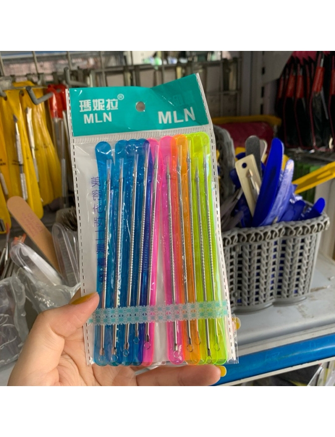 Vĩ 12 cây nặn mụn đầu đen MLN GIÁ RẺ thép không rĩ, dùng nặn mụn chuyên nghiệp, nặn mụn trong tiệm Spa