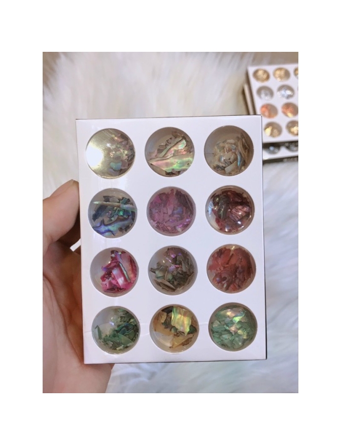 Xà xừ vân gỗ 1 set 12 ô nhiều màu, mẫu siêu sáng, lấp lánh FREESHIP trang trí nail, ẩn xà cừ vân gỗ, ẩn xà cừ vân đá