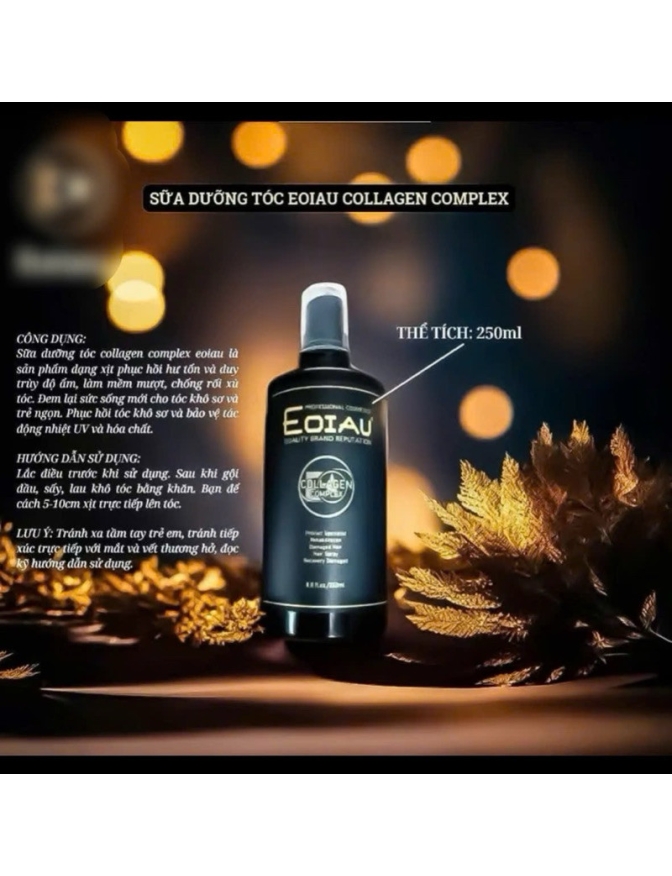 Xịt dưỡng Eoiau Collagen Complex 250ml chai đen giúp phục hồi hư tổn làm mềm mượt hương nước hoa thơm mát.
